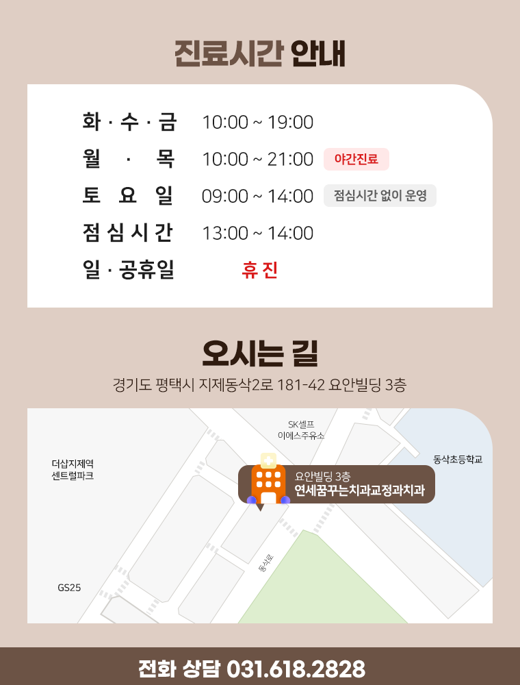 그러므로 사소한 불편이라도 넘기지 말고, 상담을 통하여 현재 상태를 정확히 파악하며 앞으로의 치료 방향을 함께 계획해 보시길 권해요.